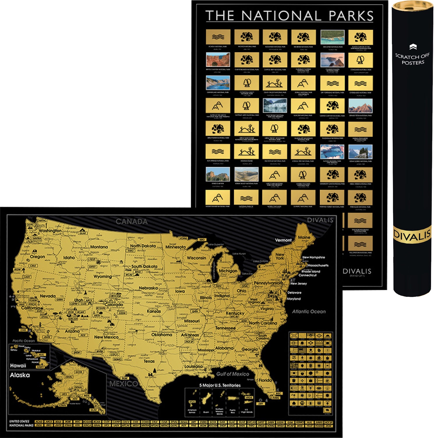 2 in 1 Gift Set - Scratch off USA Map with National Parks Poster Print - Scratchable US Travel Map