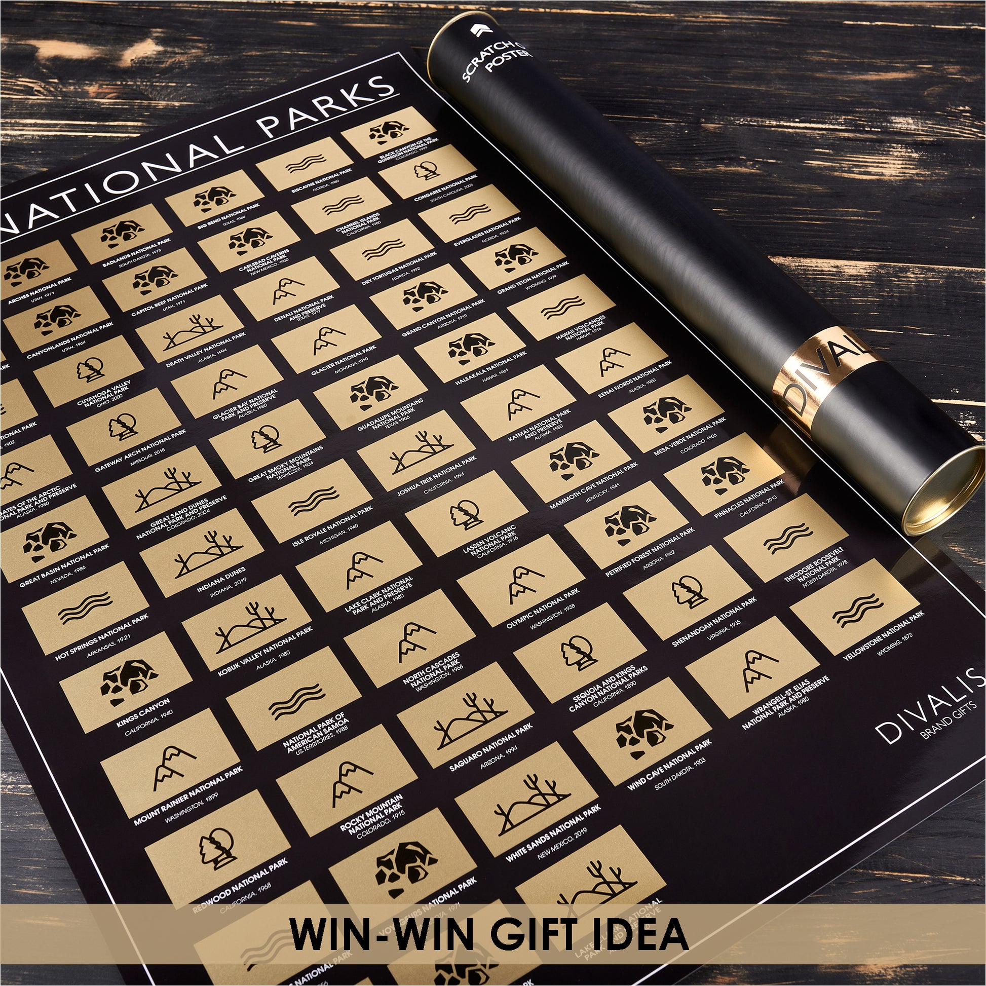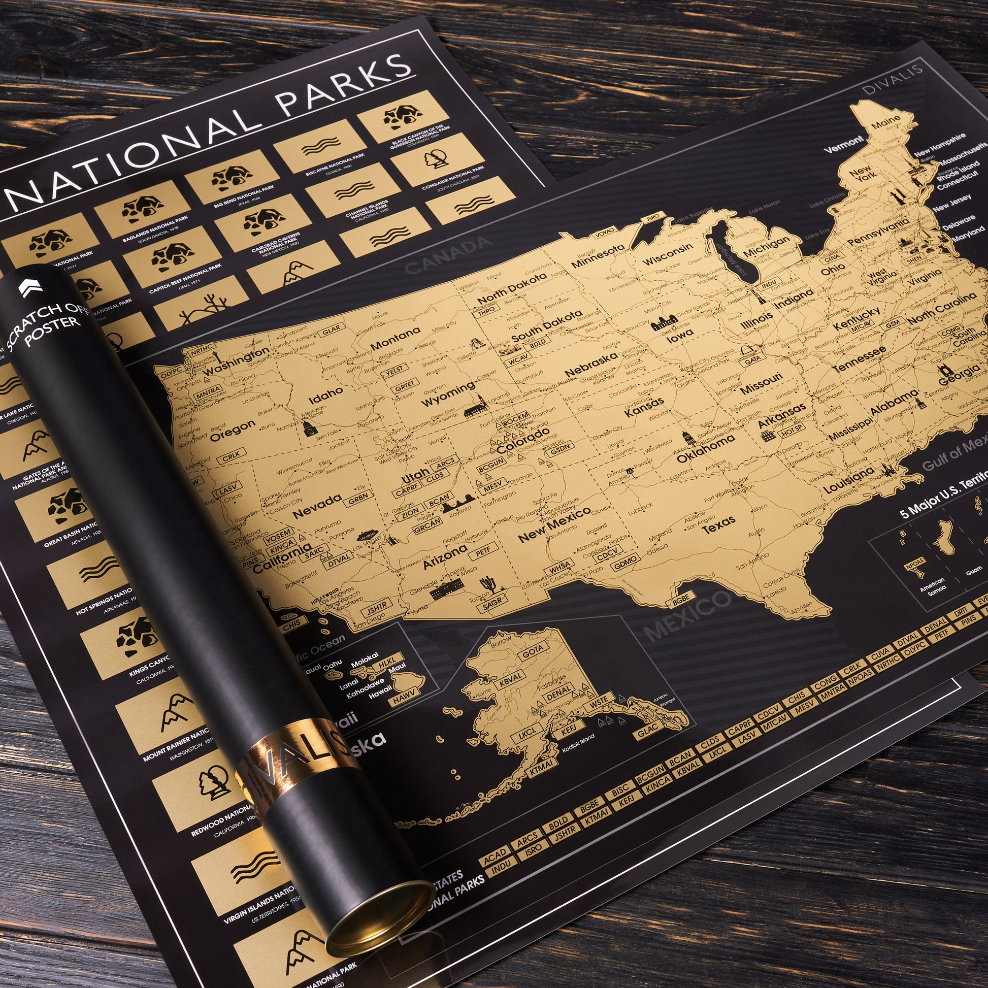 - A GREAT GIFT - an elegant gift tube and useful content from a detailed scratch off map of the USA and a scratch poster of NP`s will give maximum information and arouse positive emotions even in the most demanding person. In the tube you will find an additional poster of the Top 30 US Peaks. And don't forget the 30-day warranty for all our maps.