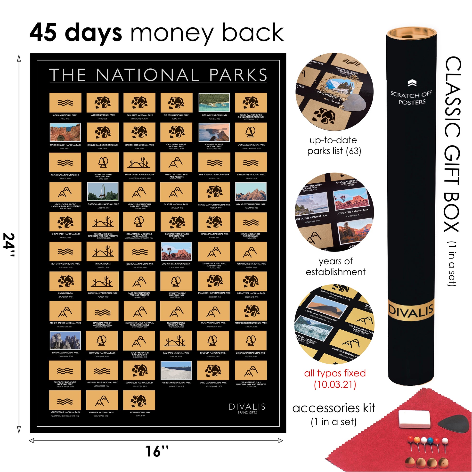 - SYNERGY - posters complement each other perfectly as all the parks on the poster correspond to parks on the US scratch off map - you can not only mark the location of the park on the traveler map, but also visualize it beautifully on the poster