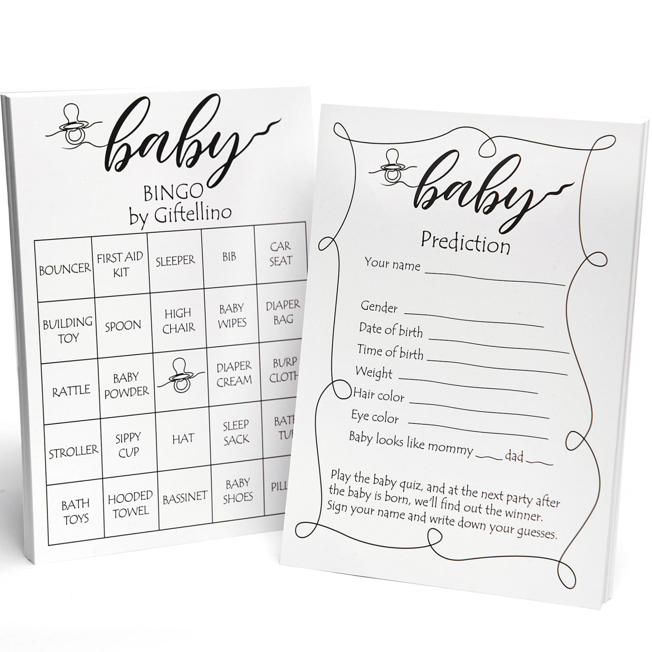 - 2-IN-1 GAME SET: Enjoy double the fun with both a baby shower bingo game and a baby prediction game, ideal for keeping guests entertained