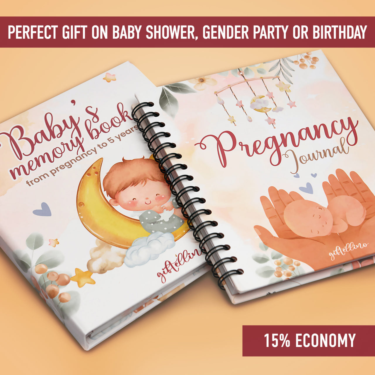 The ultimate 2-in-1 Gift Set combines a Pregnancy Journal and a Baby Memory Book, offering the most comprehensive and detailed way to document the journey from pregnancy to your child’s fifth birthday.