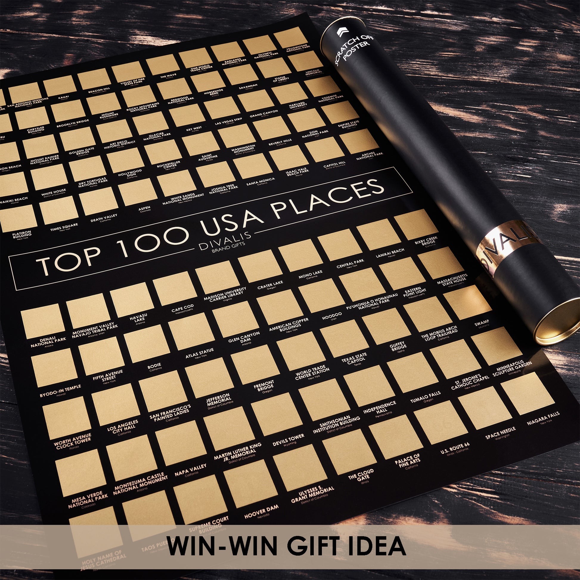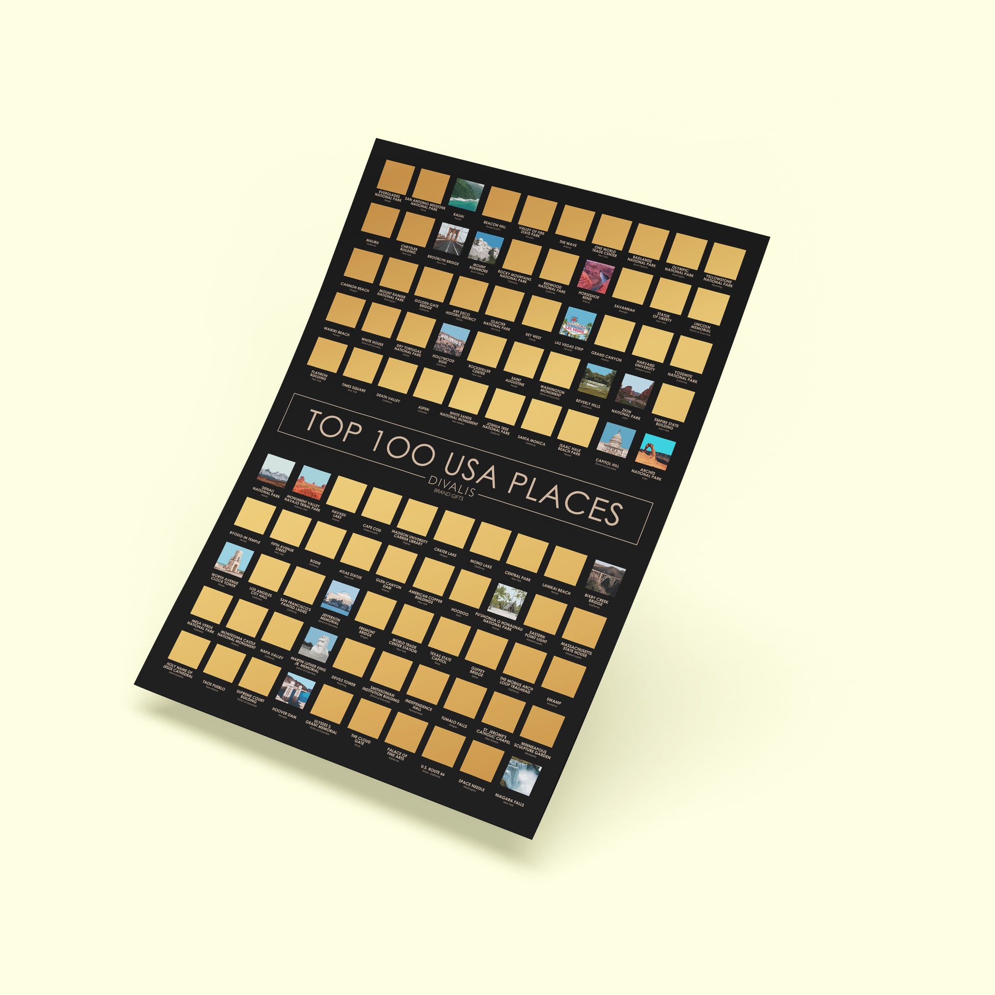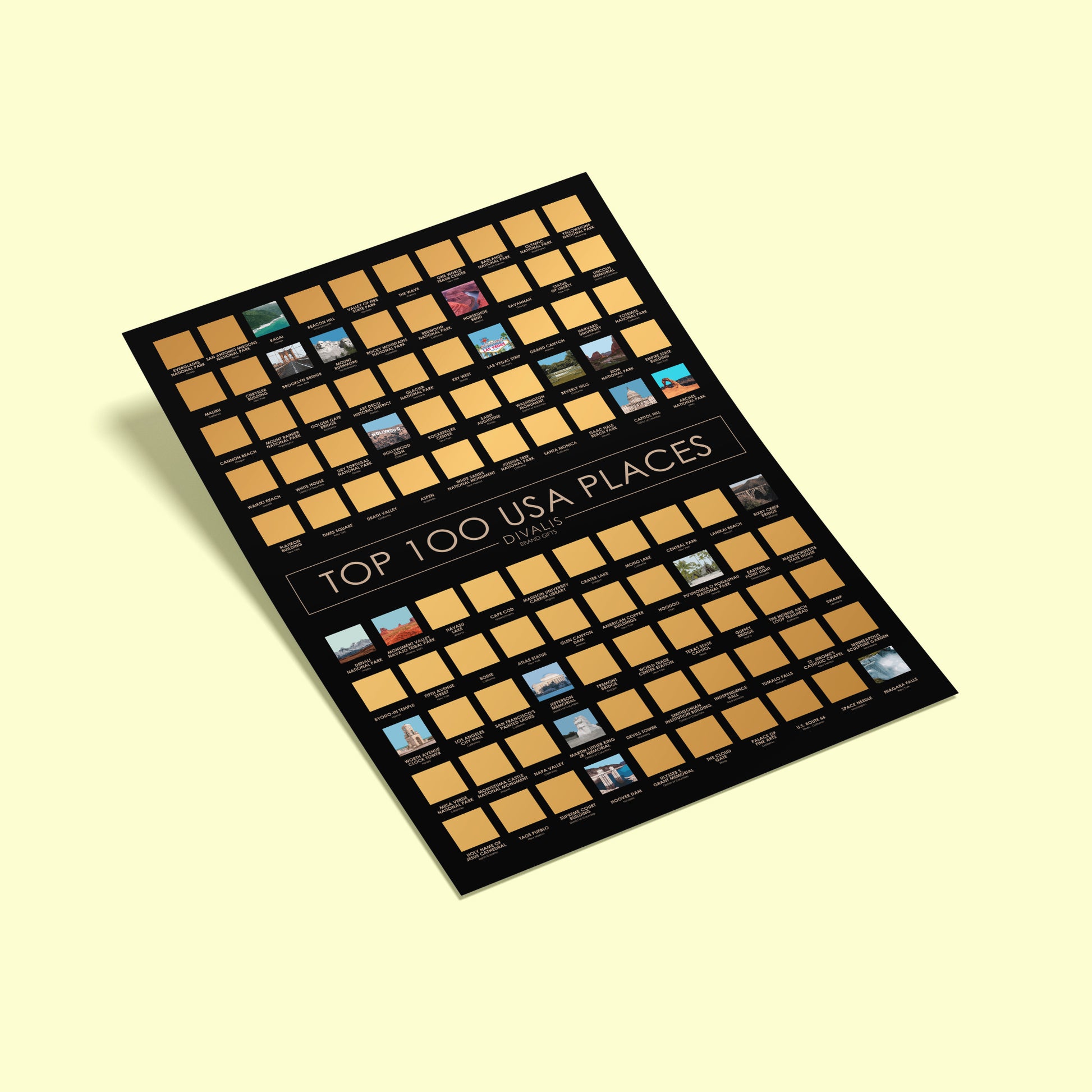 Top 100 USA Places You Have Been Scratch off Travel Poster - Scratchable Poster of the Places Visited - Places You Have Visited Map